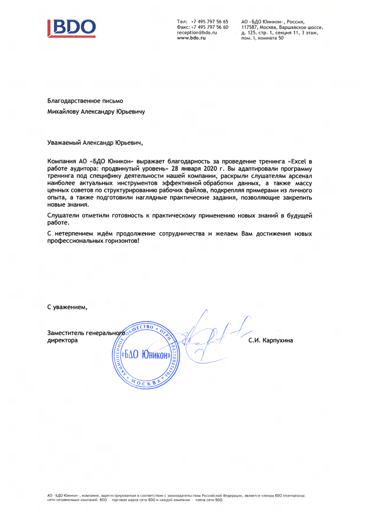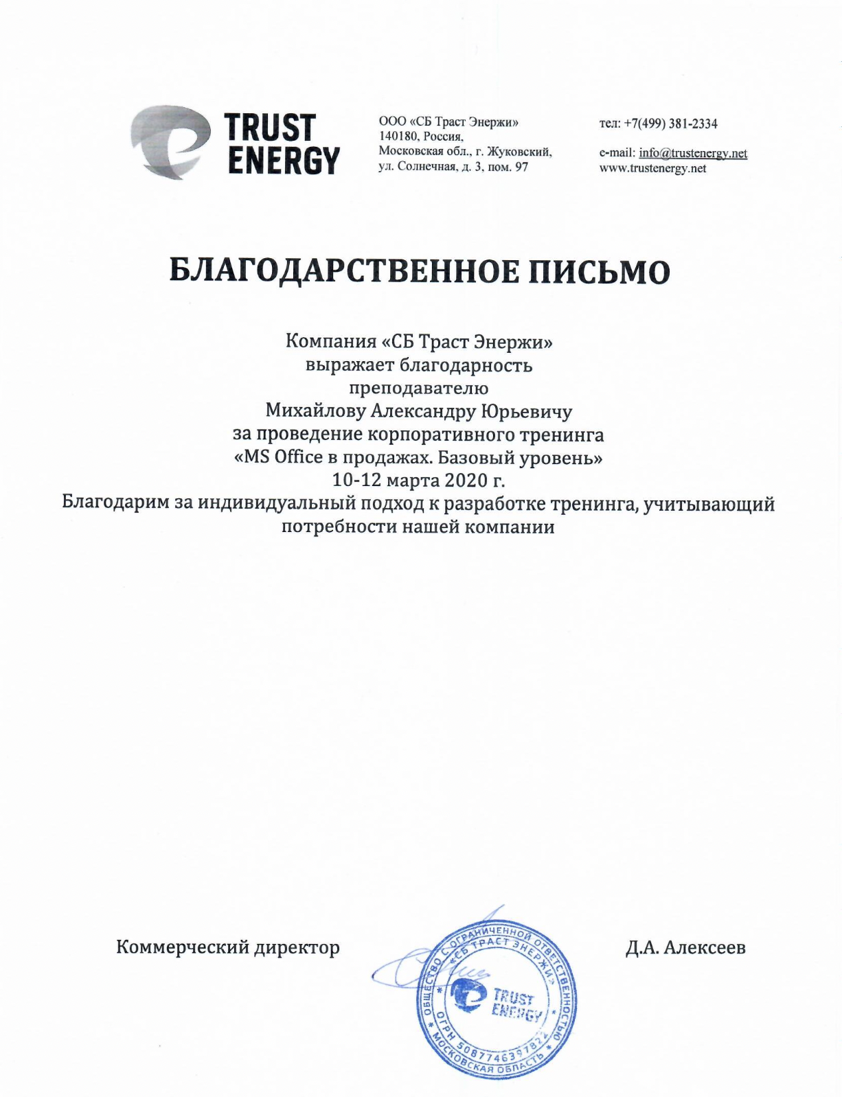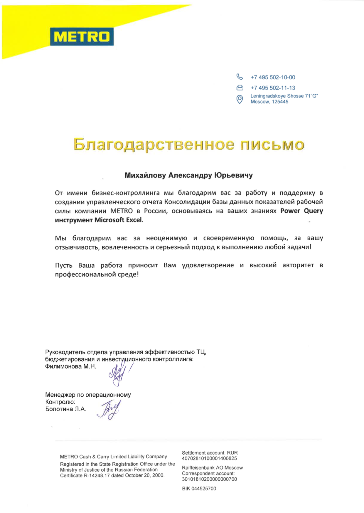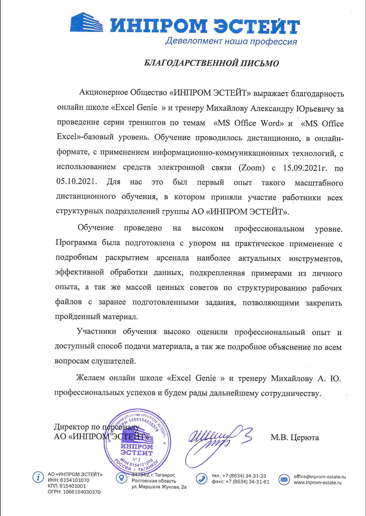 За время работы я получил множество благодарностей от компаний, где вел тренинги. Руководство и сотрудники отмечают высокий профессионализм, индивидуальный подход к участникам, а также значительное снижение трудозатрат на выполнение работ в Excel и экономию рабочего времени.