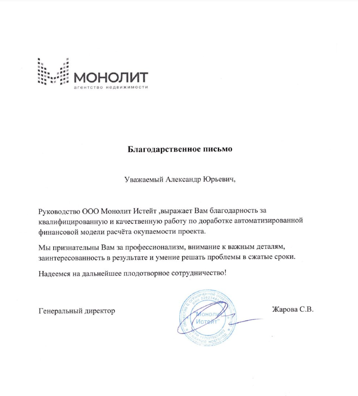 Впрочем, лучше довольного руководства компаний в благодарственных письмах ниже об этом никто не скажет.